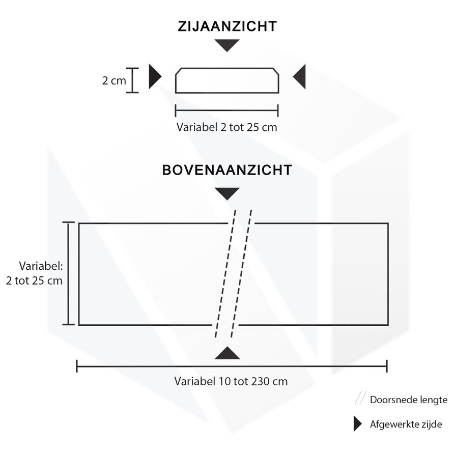 1 kant verstek + 1 kant met hoek uitgezaagd €29,95